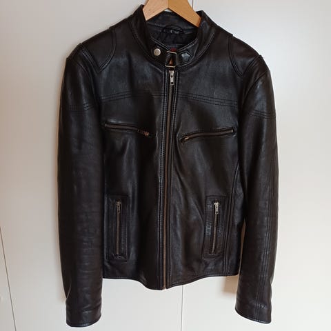 Svart läderjacka för herr i storlek S (48).