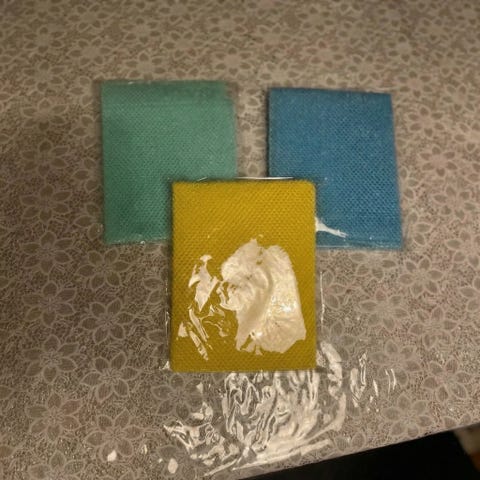 Dekorativa kulor i flera färger inslagna i bubbelplast. Användningsområden kan inkludera dekoration och hantverk. Material och storlek är inte specificerade.