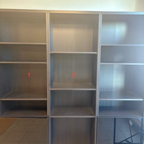 IKEA förvaringsskåp med dörrar i vitt och träimitation. Skåpet har måtten 138 cm i höjd, 60 cm i bredd och 42 cm i djup. Passar för förvaring i olika rum.