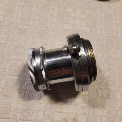 Objektivet I mycket fint skick men med personnummermärkning. Observera att objektivet har klara linser utan dimma som drabbar nästan alla objektiv av den här typen.