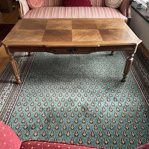 Kvadratiskt soffbord med ekfaner i mycket gott skick.