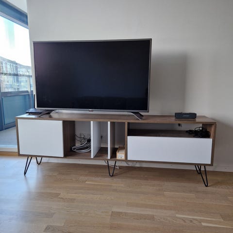 Tv stand with drawers in good condition. Some marks that can be cleaned, made of MDF. Pickup only