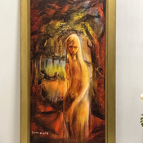 Oljemålning med motiv av rödlök. Konstverket visar tre rödlökar i olika storlekar och former, målat med realistisk stil och dämpade färger. Passar som dekorativ tavla i hem eller kontor.