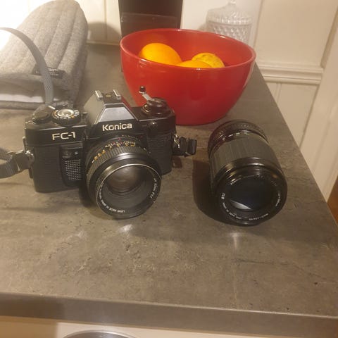 Mycket fin Minolta med Leica skruvfattning. Kameran är nästan mint. Objektivet bär spår av användning. Kameran och objektivet fungerar klanderfritt.