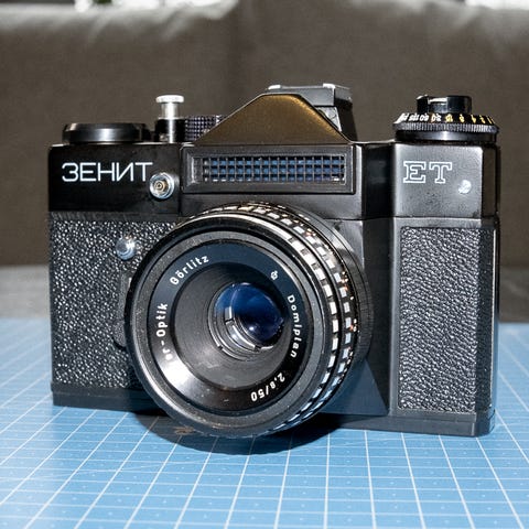 Säljer en klassisk analog 35mm systemkamera: Zenit ET. Robust och helt mekanisk kamera från Sovjettiden. Perfekt för dig som vill fota analogt eller för samlare.