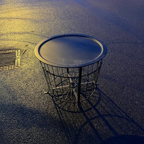 Bordet har en naturlig stenmönstrad yta i olika nyanser av grått. Passar som matbord eller möbel i olika miljöer.