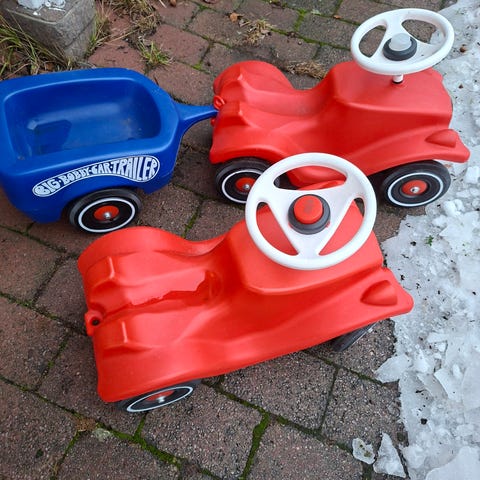 1 Blå Bobby-Car i nästan nyskick och 1 Barnlampa Flygplan (Philips) nästan nyskick ,