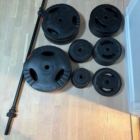 Viktskivor och skivstång för träning