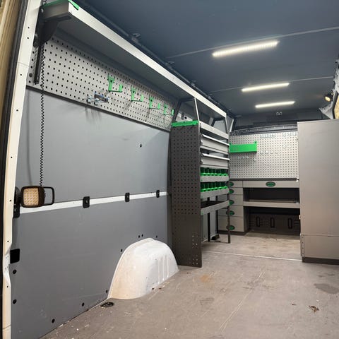 Bilinredning, långlådor och mellangolv.