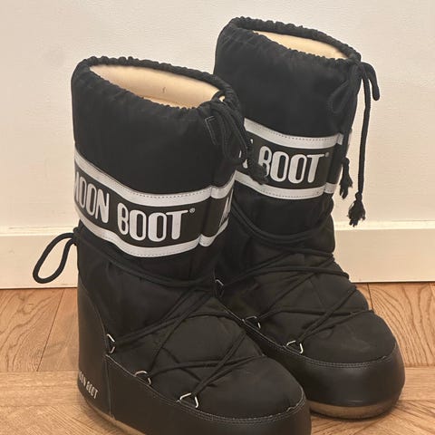Moon Boot unisex barnskor i storlek 37 (36-38) Skorna är svarta och har en robust sula för bra grepp. De är designade för att användas som vinter- eller snöskor och har snörning för justerbar passform. Skorna är endast använda någon gång.