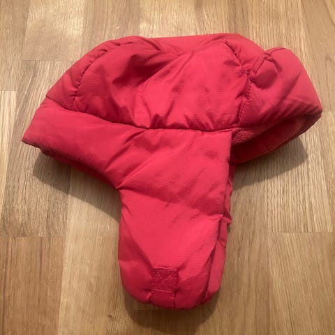 Mössa st 50 (liten i storlek) gammalrosa med grå teddy, fleece fodrad. 45 kr