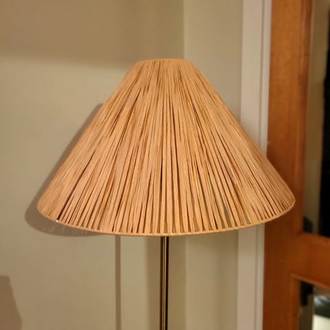 Finns strömbrytare på golvet och en på lampstången.