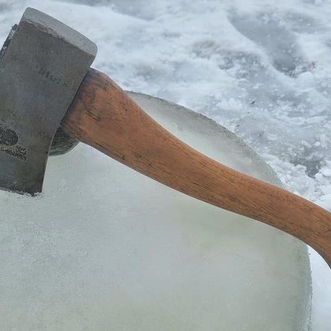 Detta är inte en vanlig civil brandyxa, utan militärt fältverktyg av den typ som användes av svenska Försvarsmakten.