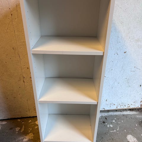 Hyllplan kan flyttas. Lite slitage på vissa plankor.