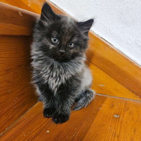 Dom är nu 10 veckor, rumsrena och äter kattmat, både hård och mjuk mat. Vi har 2 hanar och 1 hona. Alla har olika personligheter.
