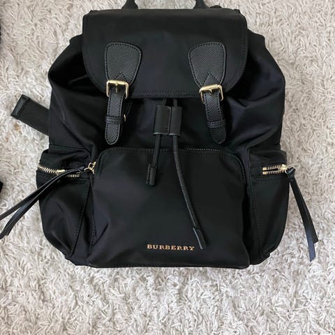 Burberry ryggsäck i tygmaterial, designad för unisex-användning. Ryggsäcken har justerbara axelremmar och flera fickor för förvaring. Passar för dagligt bruk och olika aktiviteter där en ryggsäck är lämplig.