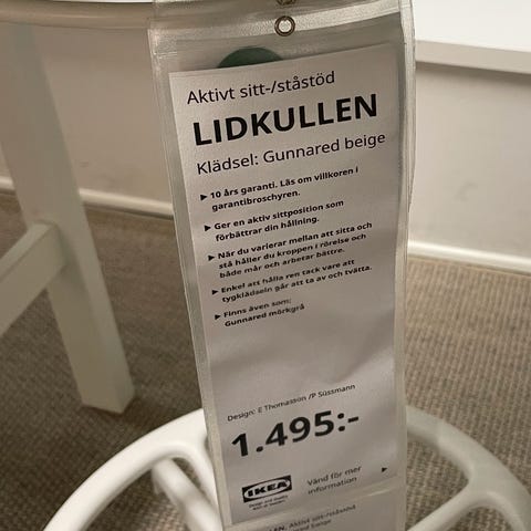 Helt ny pall från IKEA, Lidkullen. Höj och sänkbar. Vit stomme, beige dyna. Säljer pga felköp för mindre än halva priset pga platsbrist. Nypris 1 495:-