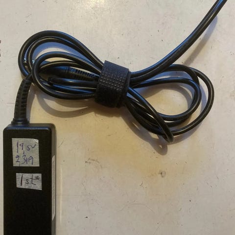 HP, 19 volt 65 Watt en laddare ingår i denna bilder visar allt som ingår.