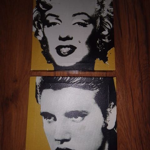 Tavlor mm med Elvis och Monroe motiv mm. Ge gärna bud på allt. Stora Elvis tavlan 450 kronor. Mvh Kjell 079 0458431 Åmål