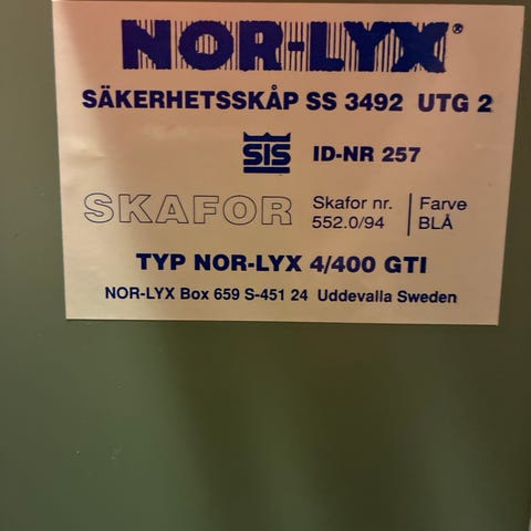 Vapenskåp, Nor-Lyx HL-12, SS 3492