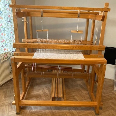 Bordsvävstolar säljes. 35 cm bred, med tillbehör. Liten, smidig vävstol som man inte behöver trampor till (men det går att komplettera med det). Det sitter inte varp i som på bilderna. Skickas inte.