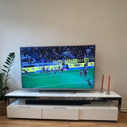 Säljer en fin massiv tv bänk i en längre modell. Vit högglans, har fått några fläckar som inte påverkar funktionen.