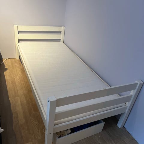 Säljer en 90 säng med i stort sätt ny bäddmadrass 2 st