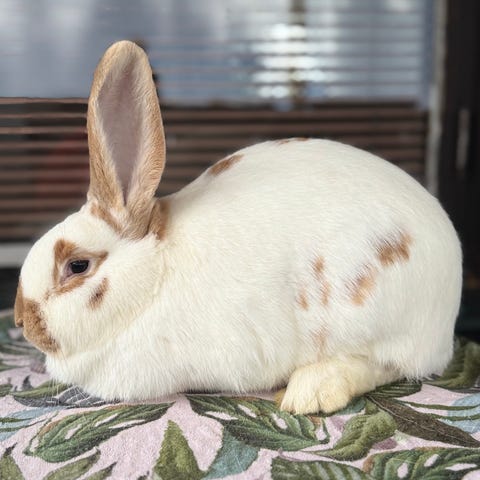 Hon utstrålar trygghet och har ett mycket fint temperament. Älskar att att bli klappad och är otroligt gosig och nyfiken. En kanin som gärna umgås och passar perfekt för dig som söker en trevlig och social vän.