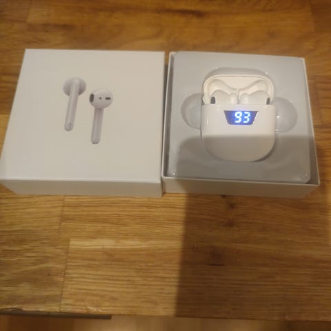 Trådlösa ear pods vita samt in ear svarta hörlurar