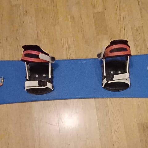 Nitro snowboard utrustad med bindningar och säkerhetslina.