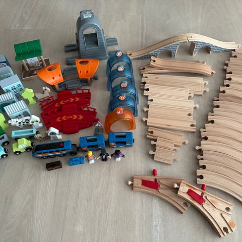 Säljer nu ett rejält paket med BRIO tågbana i mycket fint skick. En perfekt blandning av klassiska träskenor och det interaktiva Smart Tech-systemet som gör leken extra levande.