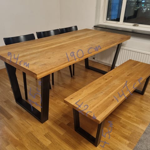 Två stålbänkar, otroligt fina! Kan användas som både sittbänkar vid matbordet, eller uppställt som ett långt sidobord. Jag har har använt dem som allt ifrån matbords bänkar till lång TV-bänk.