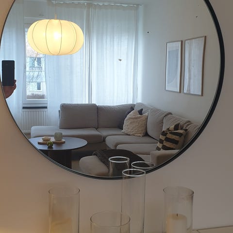 167 cm hög, 37 cm bred. Går att hänga på både höjden och bredden, finns hängare på baksidan för att göra vilket som. Fint skick! Tror den är köpt på