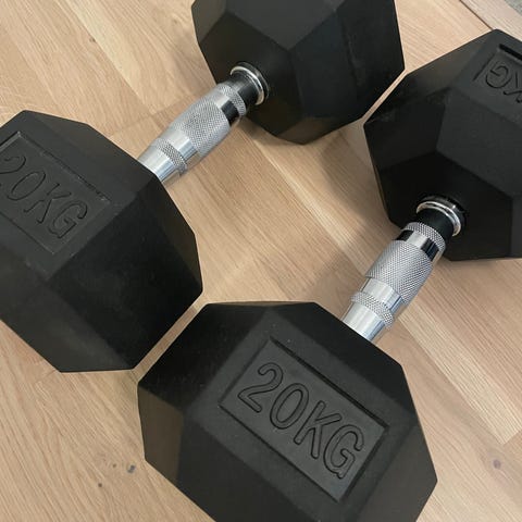 Titan Life hantel med en vikt på 38 kg. Hanteln är svart med blå detaljer och har ett greppvänligt handtag i metall. Passar för styrketräning och muskeluppbyggnad. Nypris idag 2800 kr styck. (5600 kr paret) Säljes som ett par. Hämtade på plats.