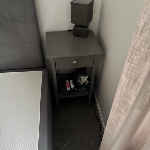 Två brunsvarta sängbord Hemnes från IKEA. De är välanvända men inte trasiga. Det ena är i bättre skick än det andra som har lite färgskav. Det går dock enkelt enkelt att åtgärda med bets för den som vill.