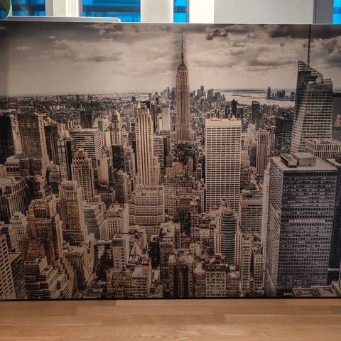 New York Tavla inramad i träral med glas