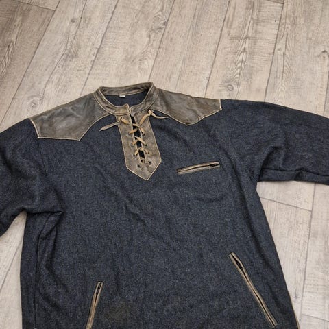 Skinnskjorta i fint skick. Fodrad. Lätt ärgade öljetter men skinnet är i finfint skick