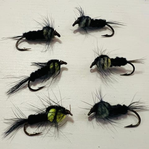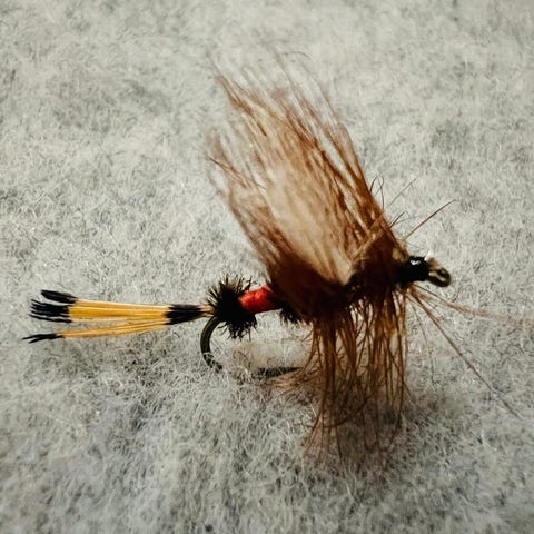 Säljer här ett 6-pack av den klassiska svenska torrflugan Korken – handbunden med noggrannhet, på kvalitetskrok i storlek 10. Detta är en mycket beprövad och effektiv imitation av nattsländor, särskilt i strömmande vatten men också i lugna sel och sjöar.