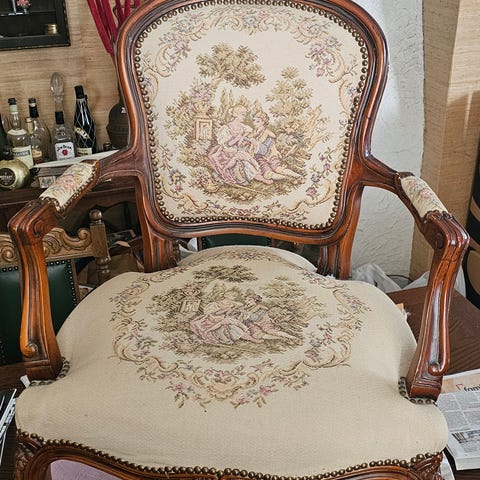 Charmig äldre bankett/taburett/pall med omklädd randig sits. Okänd ålder i fint skick!