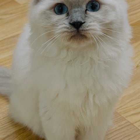 Mamman är Ragdoll och skogskatt blandning, pappan är skeppskatt.
