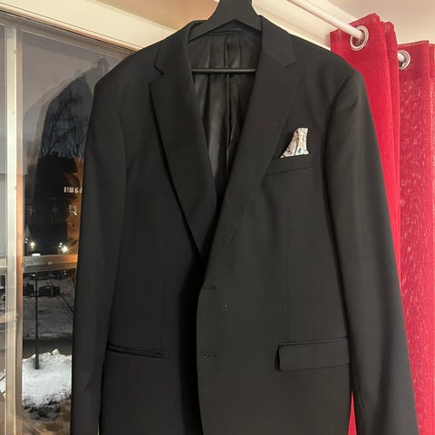 Dressmann kavaj för herr i storlek 52. Tillverkad i svart ullmaterial med stretch för ökad komfort.