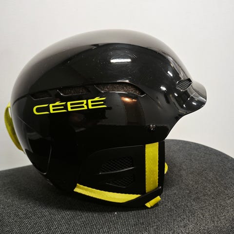 Büri och CEBE skidhjälmar i storlek anpassad för vuxna. Büri-hjälmen har en silver, röd och blå design med röda vadderade insidor. CEBE-hjälmen är svart med justerbar storlek och vadderad insida för komfort och skydd vid skidåkning.CEBE 56/58 storlek 300 kr och den andra samma som storlek 200 kr.