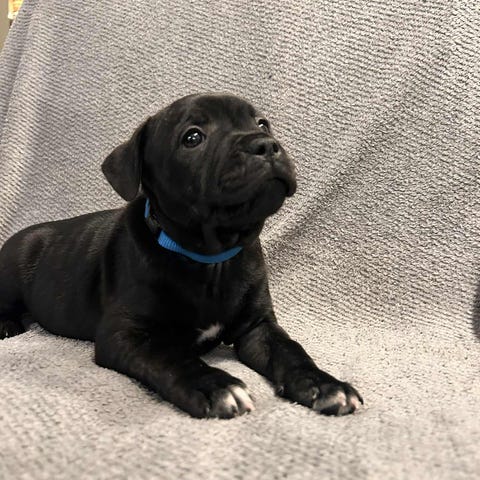 Hon är en American staffeetier bullterrier så inte så super hög som en amstaff