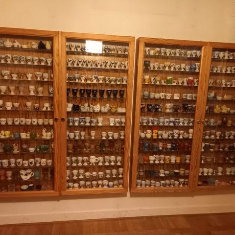 Säljer skåp med glasdörrar. Perfekt att samla fina saker i. Gediget skåp som hänges på väggen. 6 hyllor