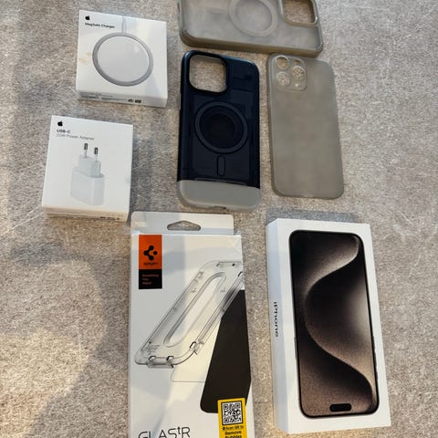 Apple iPhone 15 Pro Max mobiltelefon med 512 GB lagringsutrymme. Enheten har en stor skärm och avancerade kamerafunktioner. Fungerar med iOS och är lämplig för användare som behöver mycket intern lagring.
