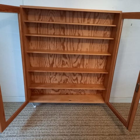 Säljer både skåpet och äggkoppssamlingen. Det finns 2 skåp. Glasdörrar och glashyllor. Fint skick. Gedigna skåp