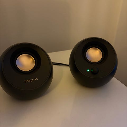 Högtalare från företaget Creative, modell Pebbles V2. De passar bra till nästan allt, tex gaming, hemmabio osv. De är i bra skick och levererar samma ljud / prestanda de gjorde som när de vart köpta. Kan hämtas i Rotebro eller Upplands Väsby och fraktas