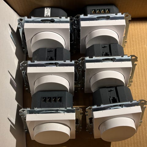 Finns 5 st dimmer Schneider Exxact RC 1-370W Vit. De flesta helt oanvända, några sparsamt använda.