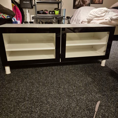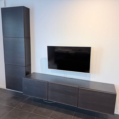 Bestå TV-bänk från IKEA i svartbrun. Inköpt för ett halvår sedan, säljes pga. flytt. Nyskick.