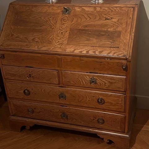 Stabil och fin gammal sekretär som behöver målas. Mått 90x180, djup 45 cm. Finns i Liljeholmen